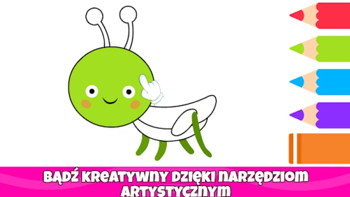 Odkryj świat barw z naszą fascynującą aplikacją do kolorowania, zaprojektowaną specjalnie dla najmłodszych! Ta interaktywna podróż przez kreatywność to idealne narzędzie do rozwijania wyobraźni, doskonalenia zdolności manualnych i poznawania otaczającego świata. Zapewnij swojemu dziecku godziny wciągającej zabawy, która jednocześnie wspiera wczesną edukację w zakresie kolorów, kształtów, zwierząt, pojazdów i wielu innych ekscytujących tematów. Stworzona z myślą o maluchach i przedszkolakach w wieku od 1. do 5. roku życia, ta aplikacja przekształca naukę w czystą radość.