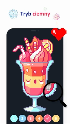 Intuicyjny interfejs No.Pix został zaprojektowany, by maksymalnie uprzyjemnić proces twórczy. Z łatwością przybliżysz i oddalisz obraz, używając gestu dwoma palcami, by precyzyjnie dotrzeć do każdego piksela. Funkcja długiego przytrzymania ekranu umożliwia szybkie i ciągłe wypełnianie obszarów kolorem, oszczędzając Twój czas i zwiększając płynność pracy. Jeśli potrzebujesz wsparcia, inteligentne podpowiedzi automatycznie wskażą Ci brakujące numery, pomagając dokończyć nawet najbardziej złożone projekty. Każde ukończone dzieło możesz zapisać i podziwiać w formie efektownego filmu poklatkowego, idealnego do udostępniania rodzinie i przyjaciołom, by mogli podziwiać proces powstawania Twojego arcydzieła.
