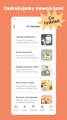 Zanurzcie się w obszernym katalogu treści Pomelody, gdzie czekają na Was delikatne kołysanki, wzbogacone o wersje instrumentalne idealne do wspólnego śpiewania. Odkryjcie porywające słuchowiska i audiobooki – od „Przygód kaczuszek" po „Legendę o Smoku Wawelskim", a także udźwiękowione rymowanki i klasyczną poezję. Dla małych odkrywców przygotowano zagadki dźwiękowe i specjalnie dobrane, niestymulujące animacje, które rozwijają wyobraźnię. Rodziny znajdą tu także piękne piosenki, takie jak „Piękny ten świat", edukacyjne rymowanki angielskie, uspokajające dźwięki, a nawet melodie do wspólnego gotowania i polski śpiewnik. Dorośli również znajdą coś dla siebie – podcasty o sztuce, wychowaniu i akordy na instrumenty.